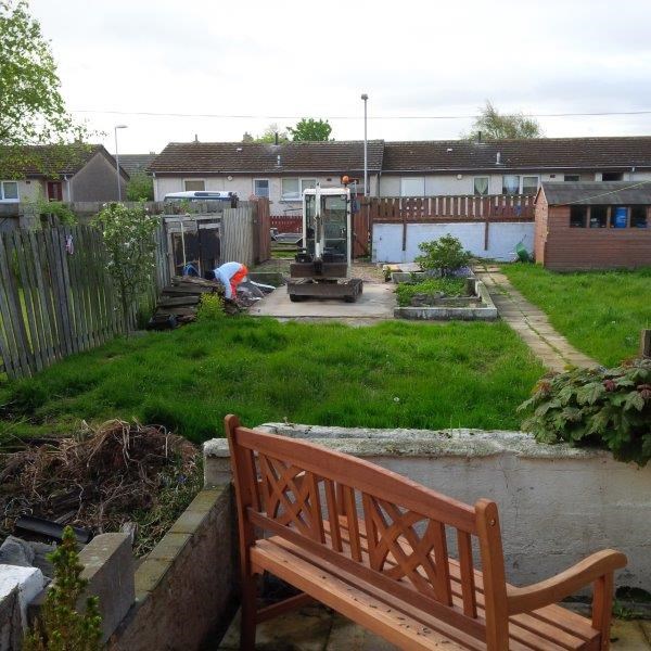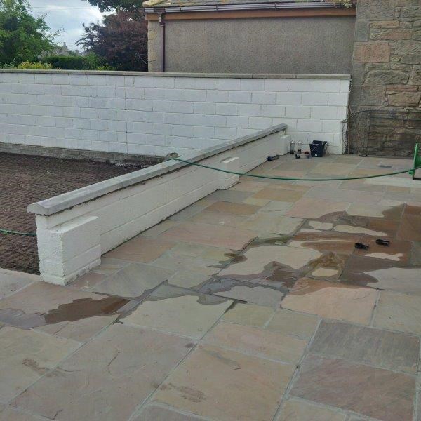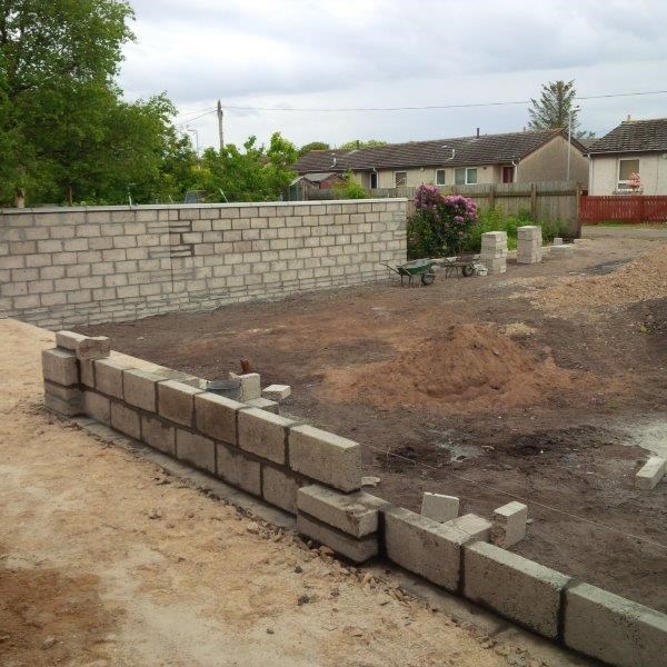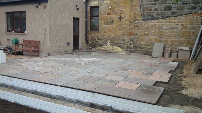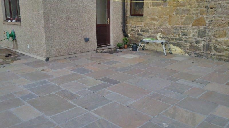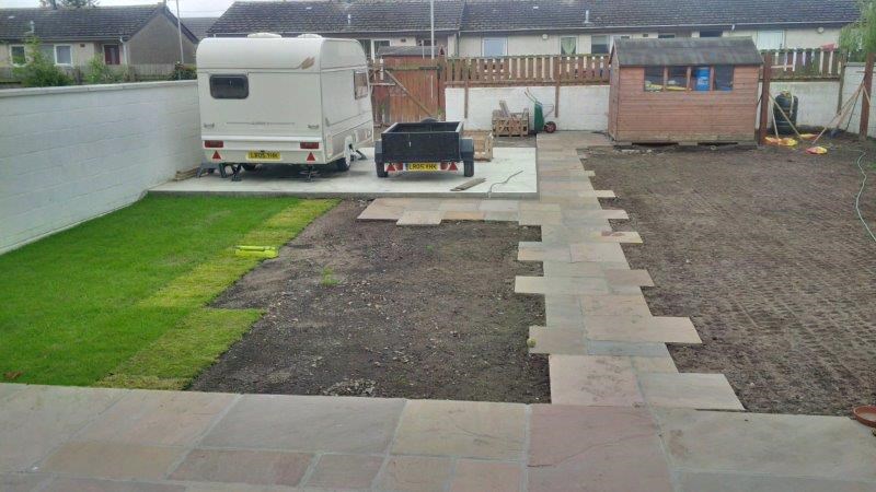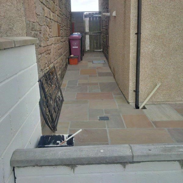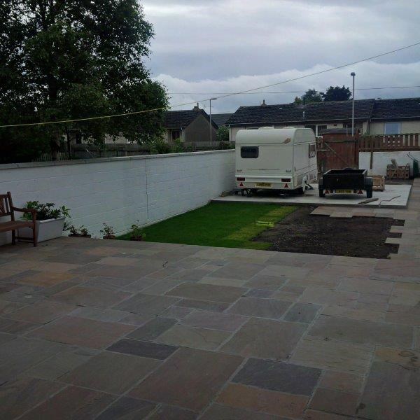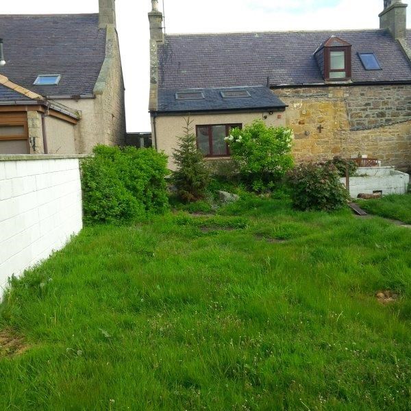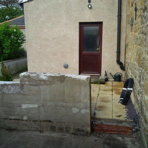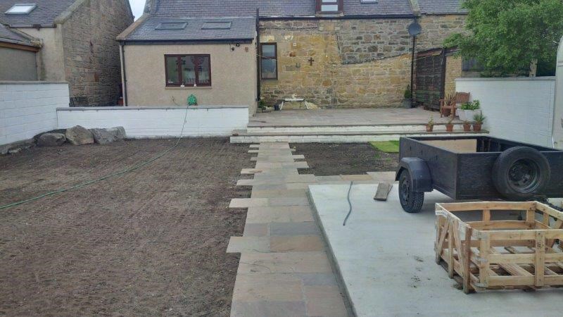 Complete garden renovation of Traditional Fisherman's cottage in Portgordon. This comprised laying a large new patio area and pathways using random Indian Sandstone slabs. Also building of new boundary walls, and creating a hardstanding area to rear and landscaping/grading of remaining garden areas. Completed 2015.