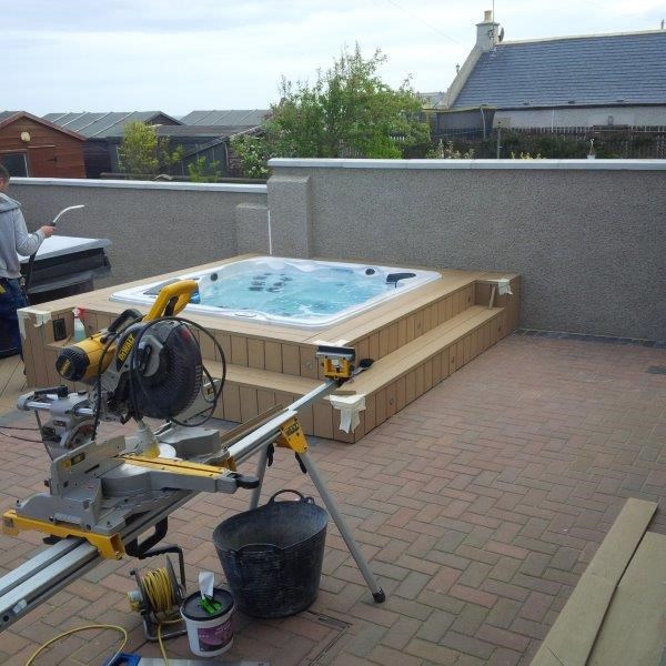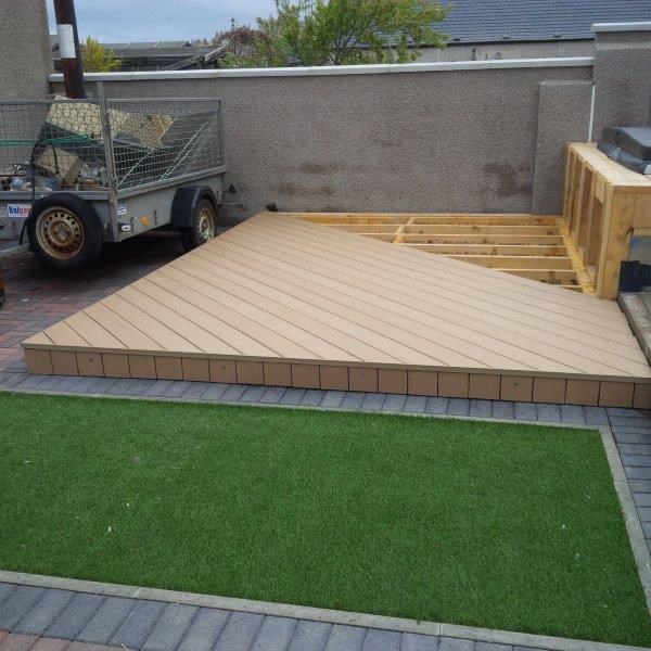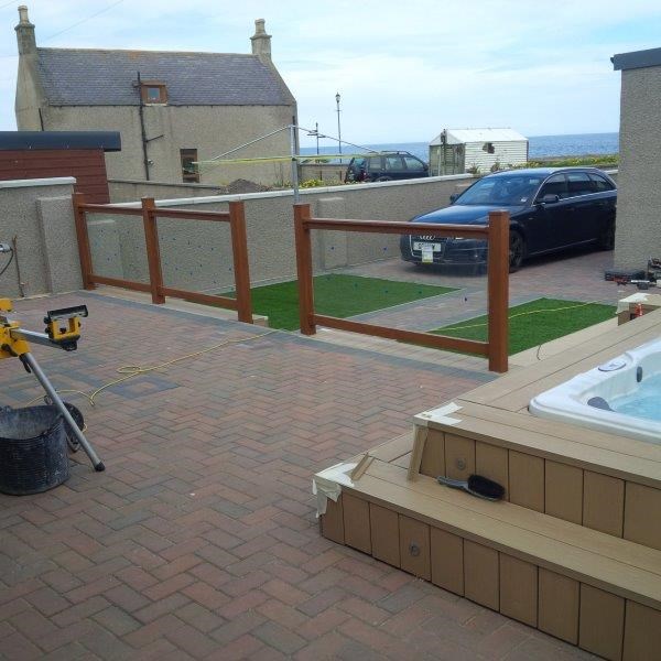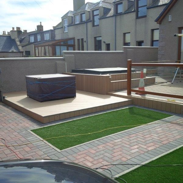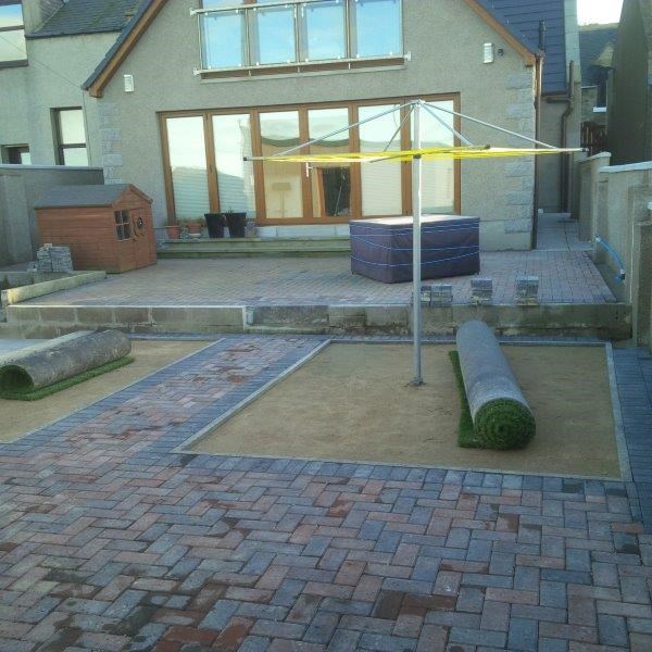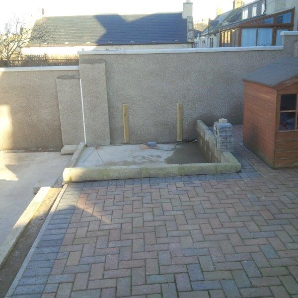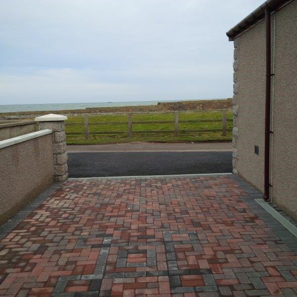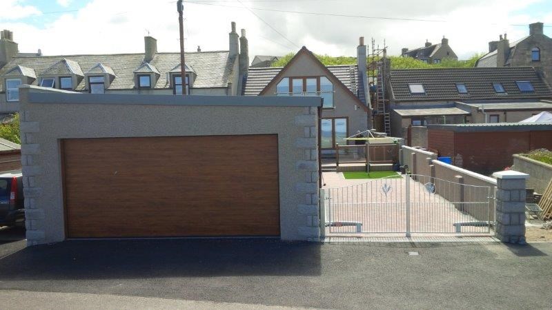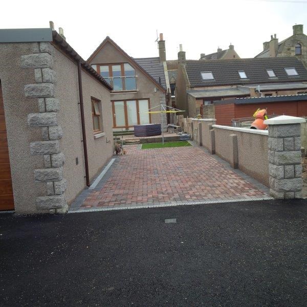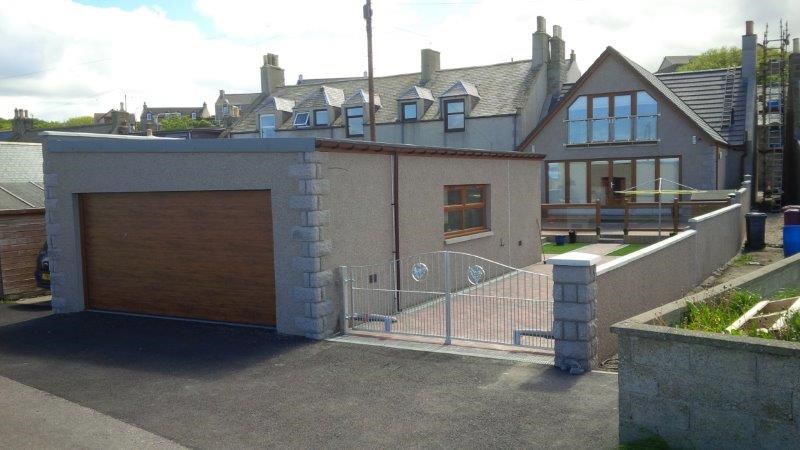 Extensive project to an old Fisherman's Cottage in a quaint area of Buckie. We erected a new 4 car garage. Constructed new boundary walls, with electrically automated galvanised gates which were made by a local fabricator. Forming and laying a new lock block driveway, UPVC decking complete with a glazed balustrade system. Remaining areas landscaped using Astroturf. Completed 2015.